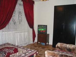 Ремонт эконом-класса. (чисто, без изысков, демократичная обстановка). Есть всё для комфортного проживания: четыре спальных места (двуспальный диван-кровать и два кресла-кровати, стиральная машина-автомат, холодильник с большой морозильной камерой, телевизор подключен к СтирмТВ (64 канала), компьютер с большим кол-вом музыки и видео на HDD и безлимитным Internet. Городская телефонная линия. Минимально необходимый набор посуды, кухонных и ванных принадлежностей, электрочайник, утюг. В маленькой комнате оборудован турник. Всё остальное — по согласованию.