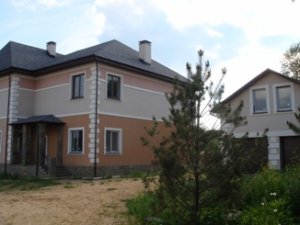 Дом из пеноблоков, облицован кирпичом и покрашен, без внутренней отделки. В доме подведены все коммуникации. Отличная планировка дома! много света, окон. Дом 2х уровневый, с балконом (вид на речку), с террасой. Гараж-2х этажный (1эт-под 2 автомобиля,2эт-комната для охраны с отдельным входом).