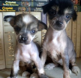Продаются щенки китайской хохлатой собачки. Родились 18 июня 2013 года. голые мальчики, девочки чёрные с чёрным или с палево рыжим плюмажем. Пуховички чёрная и норковая девочки, чёрный мальчик. Стандарт. Спокойные, аккуратные, ласковые бутузики. Стоимость 5 000 руб.