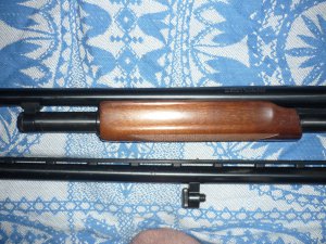 В комплекте два сменных ствола 560мм. цилиндр и охотничий 710мм. с вентпланкой и сменными насадками (в комплекте одна получок). Приклад и цевье дерево.