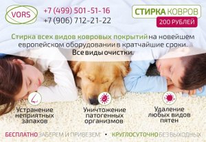 Стирка ковров на новом европейском оборудовании. Устранение всех видов загрязнений и запахов. Заберем бесплатно и привезем обратно. По всем вопросам звоните, ответим на любые вопросы.
