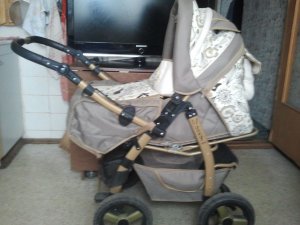 Продаётся детская универсальная коляска-трансформер, «Зима-лето», бежевого цвета. Этот цвет подходит и для мальчиков, и для девочек! Коляска в отличном состоянии Колёса резиновые. Прилагается переноска для младенца, походная сумка на ручке коляски, москитная сетка, и накидка от дождя и снега.