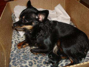 Продаются щенки Той-терьера. Родились 4 марта 2009года Два кобеля — черноподпалые, длиношерстные (как мама на фото). хвостики купированы. вес при рождении 130 и 116гр.