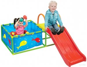 Горки и бассейны с яркими шариками «СЕМИЦВЕТИК» Playsets Deluxe with 50 Balls (DE 0054) имеют массу преимуществ, одним из которых является их компактность. «Семицветик» можно установить в любой комнате, так как размеры горки с бассейном составляют всего 152х106х64см.