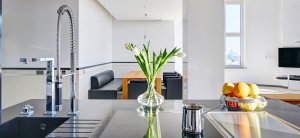 Пентхаус имеет специальное зонирование. Вы и Ваши гости могут весело проводить время в потрясающей гостиной с панорамными окнами на восток и юг. Гостиная соединена с просторной кухней оборудованной современной техникой Miele.
