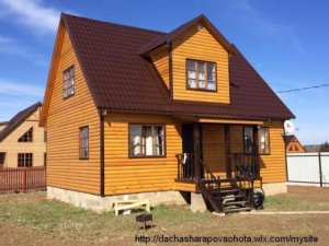 2) Дом каркасный (150), обшит снаружи блок-хаусом, внутри — вагонка, фундамент ленточный Ж/Б, утеплены 2 этажа, крыша металлочерепица.