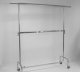 Металлическое передвижное вешало на колёсах. Подойдёт как для склада или магазина, так и для домашнего хранения вещей.