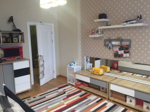 Квартира находится в современном жилом комплексе премиум-класса. Закрытая обустроенная территория с ландшафтным дизайном и детской площадкой, позволяет не беспокоится о гуляющих детях. Безопасность жильцов обеспечивается многоуровневым видеонаблюдением снаружи и внутри дома. Просторная квартира площадью 136 м² разделена на кухню-гостиную, родительскую спальню и детскую. Кроме того, в квартире имеются два санузла, постирочная и гардеробная комнаты. Комфорт владельцев обеспечивает тёплый пол по всей площади, сплит-система, бойлер и энергосберегающие стеклопакеты. Просторная, прекрасно оборудованная общественная зона оформлена в тёплом, уютном стиле. Интерьер детской нейтрален, и подойдёт как для мальчика, так и для девочки. Разбавляет спокойствие квартиры внезапно сочное колористическое оформление ванной комнаты.