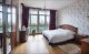 Солнечная, светлая спальня с большими окнами от пола и до потолка.