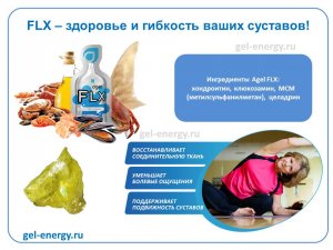 Agel FLX — это эффективная формула из Хондроитина, Глюкозамина, Целадрина, Метилсульфонилметана в удобной и легко усвояемой форме. Технология суспензированного геля обеспечивает усвоение веществ до 98%. Все компоненты содержатся в «рабочих» пропорциях, то есть, именно такое количество веществ, которое должно поступать в организм для восстановления и поддержания здоровья.