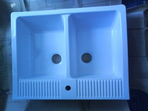 Двойная фаянсовая раковина, IKEA, 2 слива, 1 отверстие под кран. Состояние — новая.