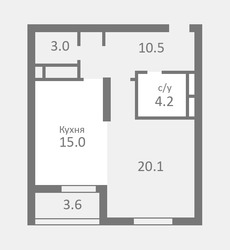 Кухня — 15 кв. м, зал – 20.1 кв. м.