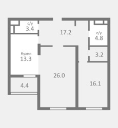 2 сан. узла, гардеробная, лоджия (4.4 кв. м).