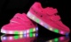 Детские светящиеся кроссовки имеют 7 цветов и 4 мигающих режима. Они меняются простым нажатием кнопки, замаскированной внутри обуви.