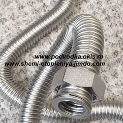 Гибкая подводка знакомая нам как резиновый шланг, оплетенный нержавеющей проволокой, становится, менее востребован. На смену ему приходит гибкая подводка из нержавеющей стали сильфонного типа например, гибкая подводка для воды из нержавейки 250-c. Она изготовлена из гофрированной нержавеющей трубы. Сама конструкция и материал позволяет использовать гибкую подводку не только для газа, горячей и холодной воды. Но и для систем отопления, для высоких температур или пара. Для саун и производств, для водопроводов, и отопления, для пара или газов. Вы навряд ли подберёте другой гибкое соединение для передачи перегретого пара в быту и производстве. Для обвязки котельных разработана гибкая подводка из нержавеющей стали больших диаметров 1/2 дюйма, 3/4 дюйма, 1 дюйм, 11/2 дюйма, 11/4 дюйма, 2 дюйма, 21/2 дюйма. Такое решение позволят обвязать готовые модули с минимальным количеством соединений и это очень важно. Первый участок от котла самый ответственный там может происходить выброс перегретого теплоносителя, и только потом сработает автоматика, и отключит котёл. Гибкая подводка из нержавейки не боится химических растворов, высоких температур, и высокого давления.