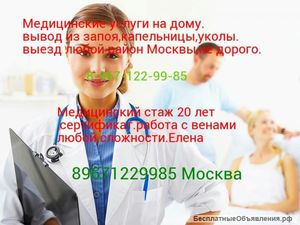 Медицинские услуги на дому. капельницы, уколы, вывод из запоя, аутогемотерапия. - Москва