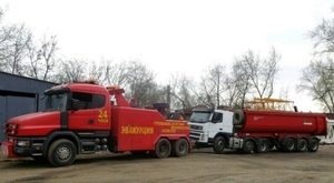 -Эвакуация груженого автопоезда общей массой до 25 т — 14500 руб.