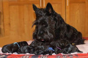Шикарные щенки скотч терьера из Московской квартиры. Окрас чёрный, тигровый и пшеничный. Дети имеют полный пакет документов. Клеймо. Полный курс прививок. Цена щенков разная.