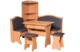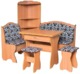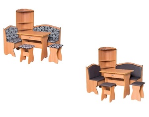 Преимущество этой модели, угловая полка. Высота углового элемента 1,5 метра. Очень удобна для хранения сыпучих ингредиентов. Удобный раскладной стол — книжка, большой уголок и две маленькие табуретки. В уголке предусмотрено место хранения, имеются ящики под каждым сиденьем. Предусмотрен ящик в столе, для хранения столовых приборов. Спинка уголка, декорирована незамысловатыми уголками, которые придают уголку изящность. Стол и угловые элементы, выполнены из материала ДСП, тем самым усилив износ изделия.