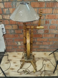 Винтажный торшер из настоящей прялки 19 века в стиле «Рустикс». Прялка отреставрирована, покрыта лаком. В качестве торшера полностью работоспособна. Идеально подойдет для оформления стилистически близких интерьеров ресторана, загородного дома, магазина.