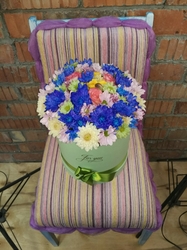 В сидении и спинке двойной слой мебельного поролона. Обит мебельной итальянской тканью, декорирован органзой.