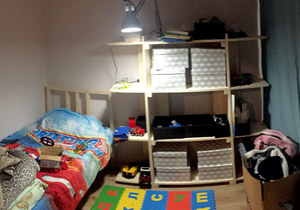 Мы используем простой метод крепления, который масштабируется на полный комплект мебели. Покупаете пиломатериал, собираете свой комплект мебели опираясь на нашу инструкцию. Для сборки потребуется электрические лобзик и шуруповерт. В инструкции список необходимого пиломатериала с артикулами магазина <<Леруа Мерлен>>. Можешь купить там, а можешь на ближайшем строительном рынке. Примерные цены на пиломатериалы ты посмотрел выше. Например, 2-3 часа в выходной на кровать и полку с друзьями. Авторы руководства — компьютерщики с 1997 года.