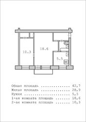 Общая площадь, м²:42.7