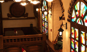 Интерьер ресторана выполнен по оригинальному дизайн — проекту. (мебель из натурального дерева )