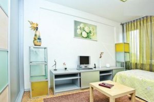 Квартира в стиле Модерн у метро Арбатская или Смоленская. Спальных мест: 3 (1 двуспальная кровать + 1 раскладной диван). К Вашим услугам: выделенная линия Интернет, спутниковое телевидение, средства гигиены, чай/кофе, посуда и вся необходимая бытовая техника: телевизор, фен, стиральная машина, водонагреватель, кондиционер, микроволновка, чайник, утюг, гладильная доска. Сервис: уборка горничными, смена полотенец и постельного белья 2 раза в неделю. Стоимость аренды: от 1 до 10 ночей — 4900 рублей, от 11 ночей — 4600 рублей.