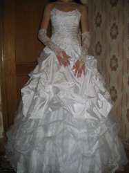 Свадебное платье шилось на заказ за 25000. Одевала один раз осенью 2009 года, с платьем отдаю шубку, перчатки и подюбник.
