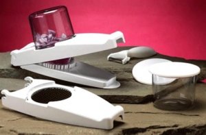 Овощерезка Nicer Dicer — кухонная принадлежность, которую вы ждали! Вы будете поражены, великолепный Nicer Dicer нарежет свежие томаты. Выкиньте обычный нож, дайте глазам отдохнуть нарезая лук — больше не будет слез, опасности порезаться, ведь ваши пальцы никогда не касаются лезвий. Нарезанные кусочки постоянно перемещаются вовнуторь. Больше не будет беспорядка. Nicer Dicer отлично осуществляет резку лука, картофеля, цукини, перца, сельдерея, вареных яиц, зелени, сыра, чеснока, любимых фруктов, яблок, груш. Он уменьшает время приготовления вполовину. Режет, нарезает больше одним быстрым движением. Он гораздо быстрее, безопаснее ножа. Салаты станут вкуснее