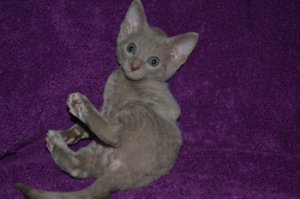 Предлагаю изумительную ласковую кошечку корниш рекса лилового окраса (осветленный шоколад) на резервирование. Сейчас ей 1,5 месяца.
