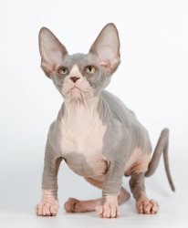 Канадский сфинкс голый котик — голубой би-колор, 2,5 мес., в отл. типе, ушастый и складчатый, приучен к лотку и к когтеточке.