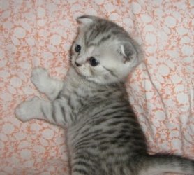 1. вислоухая девочка серебристая черная пятнистая «Вискас»