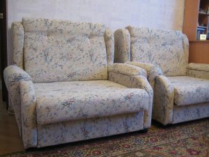 Продам кресло-кровать (2шт) в отличном состоянии, светлая обивка, ширина спального места -80 см.