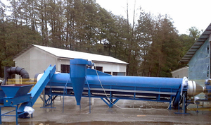 При вращении барабана происходит перемещение песка и соприкосновение с горячим воздухом. Песок нагревается и влага испаряется, оставляя сухой строительный материал, готовый к использованию.