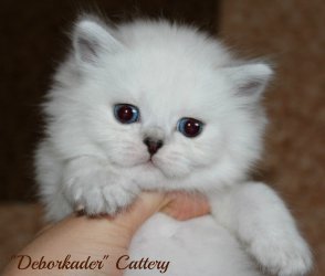 Очаровательная голубоглазая серебристая девочка — Офелия. Очень ласковая и игривая. Приучена к лотку и когтеточке. Кушает сухой корм. Продается как для души, так и в разведение. Очень ждет своих новых родителей. Мы находимся в г. Зеленоград (Москва ). Бесплатно можем доставить котенка до ближайшего метро. Есть скайп. Сайт питомника — www.debor-kader.ru