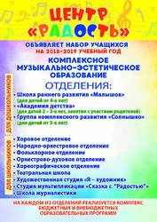 Центр «Радость» объявляет набор учащихся на 2018-2019 учебный год на следующие отделения: