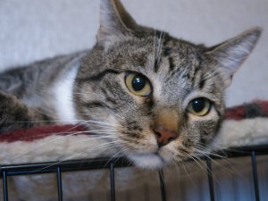 Собр, красавец-кот с большими выразительными глазами, втигрово-полосатой плюшевой шубке с четкими, как будто прорисованными полосочками и с белой манишкой, мускулистый, подтянутый, спортивный.