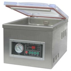 Данная вакуум-упаковочная машина относится к настольным моделям аппаратов, предназначенных для упаковки вакуумным способом пищевых продуктов. Представленный аппарат обладает достаточно крупной камерой с особой сварочной планкой, которую можно дополнить комплектом, позволяющим ставить дату производства или же упаковки продуктов. Данный агрегат имеет корпус, состоящий целиком из нержавеющей стали. При продаже к данному аппарату предоставляются комплект нужных запчастей и специальное вакуумное масло, необходимое для работы вакуум-упаковочной машины.