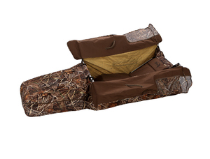 Профессиональная засидка для охоты на гуся. Засидка изготовлена из высококачественного, надежного и легкого алюминиевого каркаса и прочного влагозащищенного полиэстра 600D с PU покрытием. На самой засидке есть дополнительные лямки для переноски на месте охоты в рабочем состоянии (с травой), а также пришиты удобные лямки для переноски на спине как рюкзак. Засидка легко устанавливается на поле и удобна в транспортировке. Комфортна для длительной охоты. Не продувается ветром и не промокает. Легко маскируется сопутствующей охоте растительностью. Очень проста в установке.