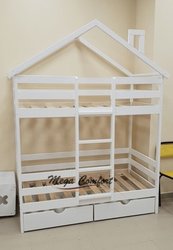 Детская двухъярусная кровать-домик по цене производителя в интернет-магазине «Мега комфорт». Кровать изготовлена из экологически безопасного материала — натуральной березы. Доставка, оплата по факту. httpsmega-comfort.ru/