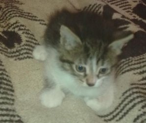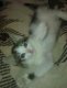 Отдам котят в добрые руки, белые с серыми пятнами, ласковые, приучены к лотку и сухом корму, кошка привита, 1мес. 3 нед.
