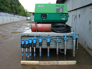 Компрессор укомплектован новыми отбойными молотками, бетоноломами, пиками, лопатками, пружинами и т. д. Шланги любой длины. Работаем по всей Москве и московской области без выходных, круглосуточно.