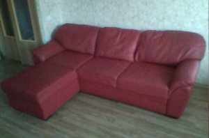 Красный Из натуральной кожи 2х местный диван-кровать с козеткой. В превосходном состоянии, купленный менее полу года назад, по случаю переезда в новую квартиру.
