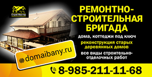 Строительная бригада «Строй Мастер» (domaibany.ru) занимается строительством с 1998 года. За период нашей деятельности нами создана материально-техническая база позволяющая выполнять значительные объемы по малоэтажному строительству и ремонту в Москве и области. Наша бригада располагает опытными специалистами, оборудованием, наработками позволяющими эффективно вести малоэтажное строительство и реконструкцию помещений и зданий. Звоните по телефону +7(495)211-11-68