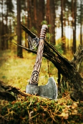 На данном топоре изображены узоры, родившиеся от знака «Трискель». Данные узоры помогали кельтам получать энергию, защиту, спокойствие, а так же установить связь в природе.