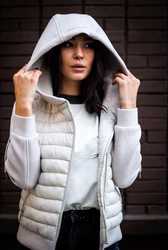 Слегка укороченные рукава и капюшон выполнены из плотного трикотажного материала.