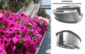 Вазон двойной с накопителем влаги — применяется в качестве объемного элемента для озеленения ограждений проезжей части, тротуаров, городских площадей, аллеи, входной группы зданий, гостиниц, ресторанов. Вазон состоит из двух контейнеров конструктивно представляющих из себя термо чашу с двойной стенкой и накопителем жидкости для полива. Растения высживаются сразу в два ряда, что позволяет получить объемную цветочную композицию с обоих сторон ограждения.