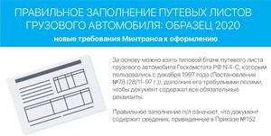 Образец 2020: Правильное заполнение путевых листов грузового автомобиля — новые требования Минтранса к оформлению.